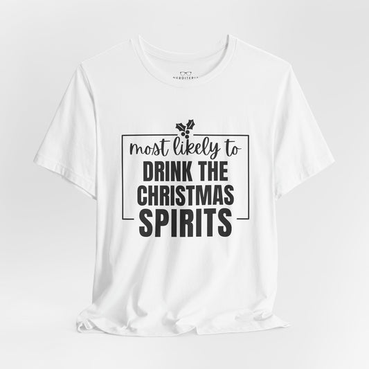 Most Likely To Drink the Christmas Spirits Tee — Holiday T-Shirt
