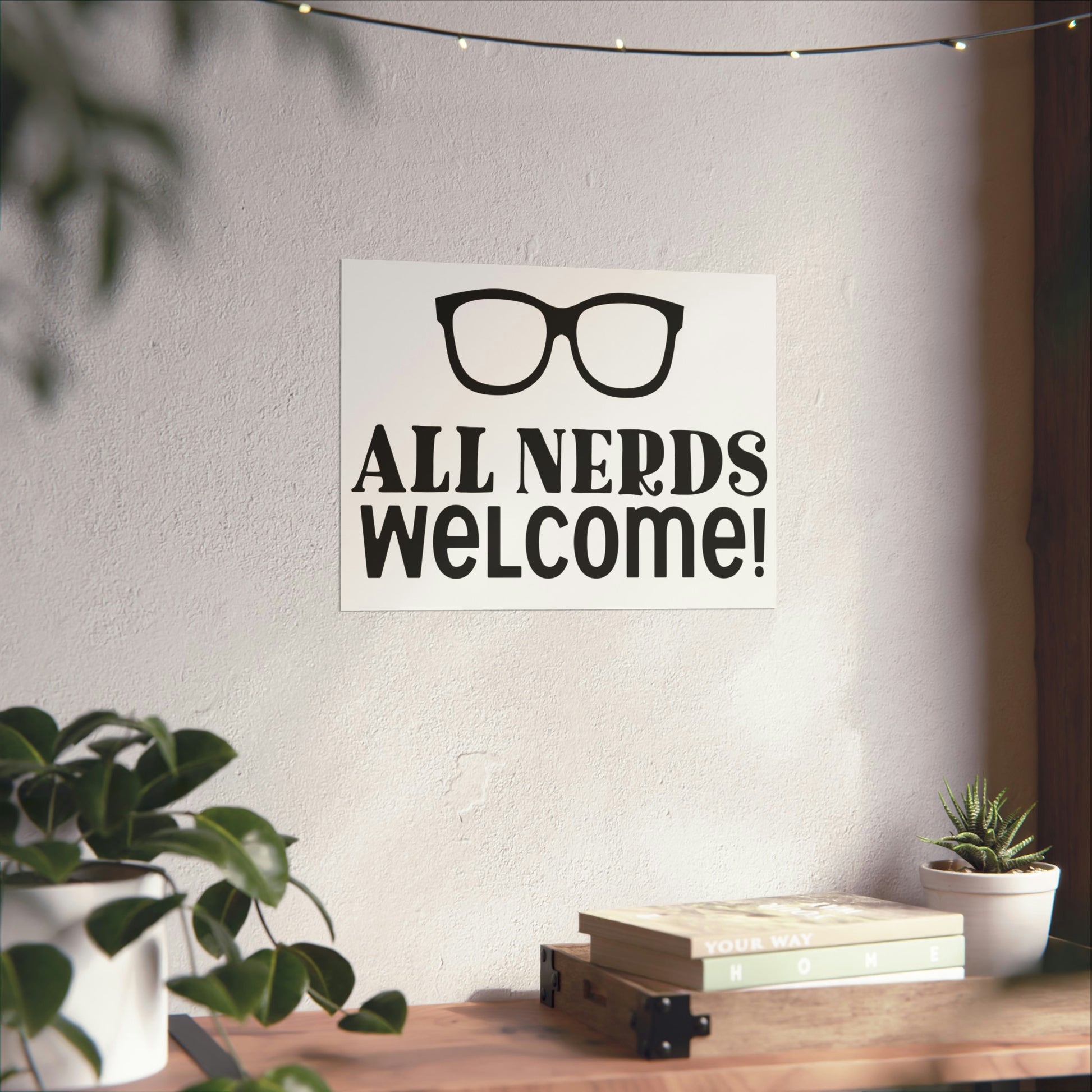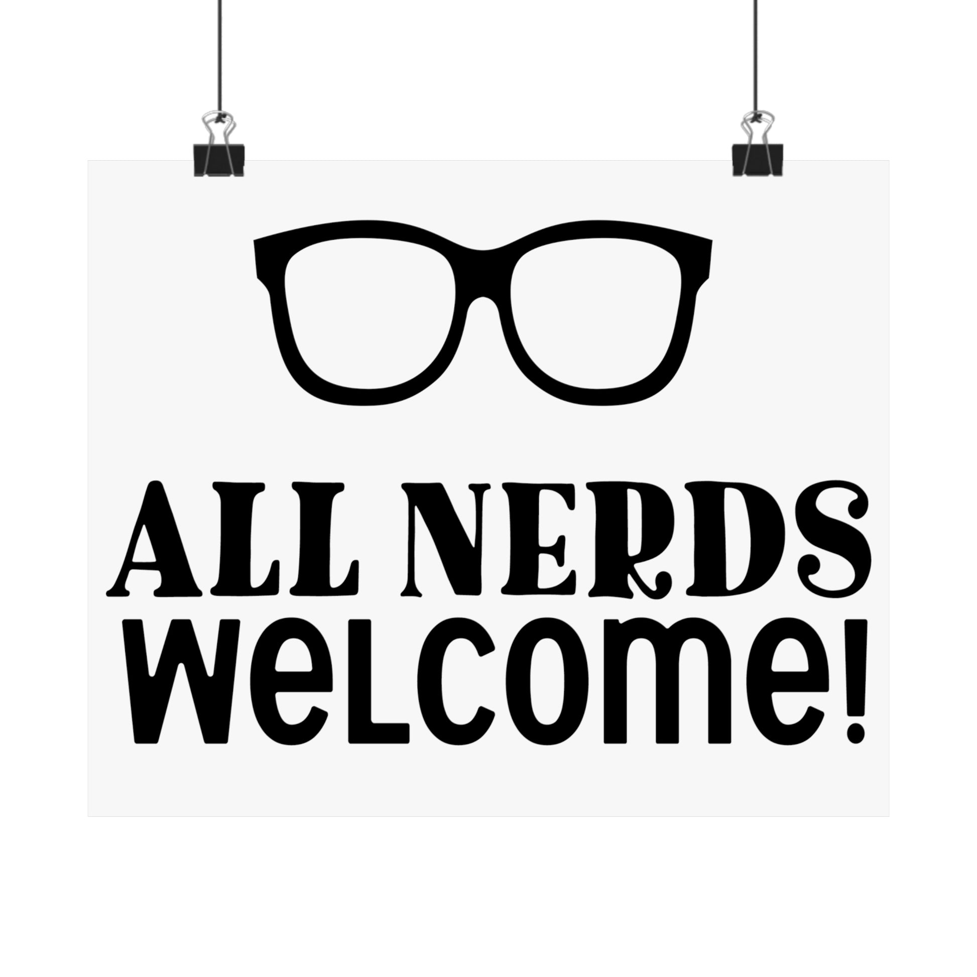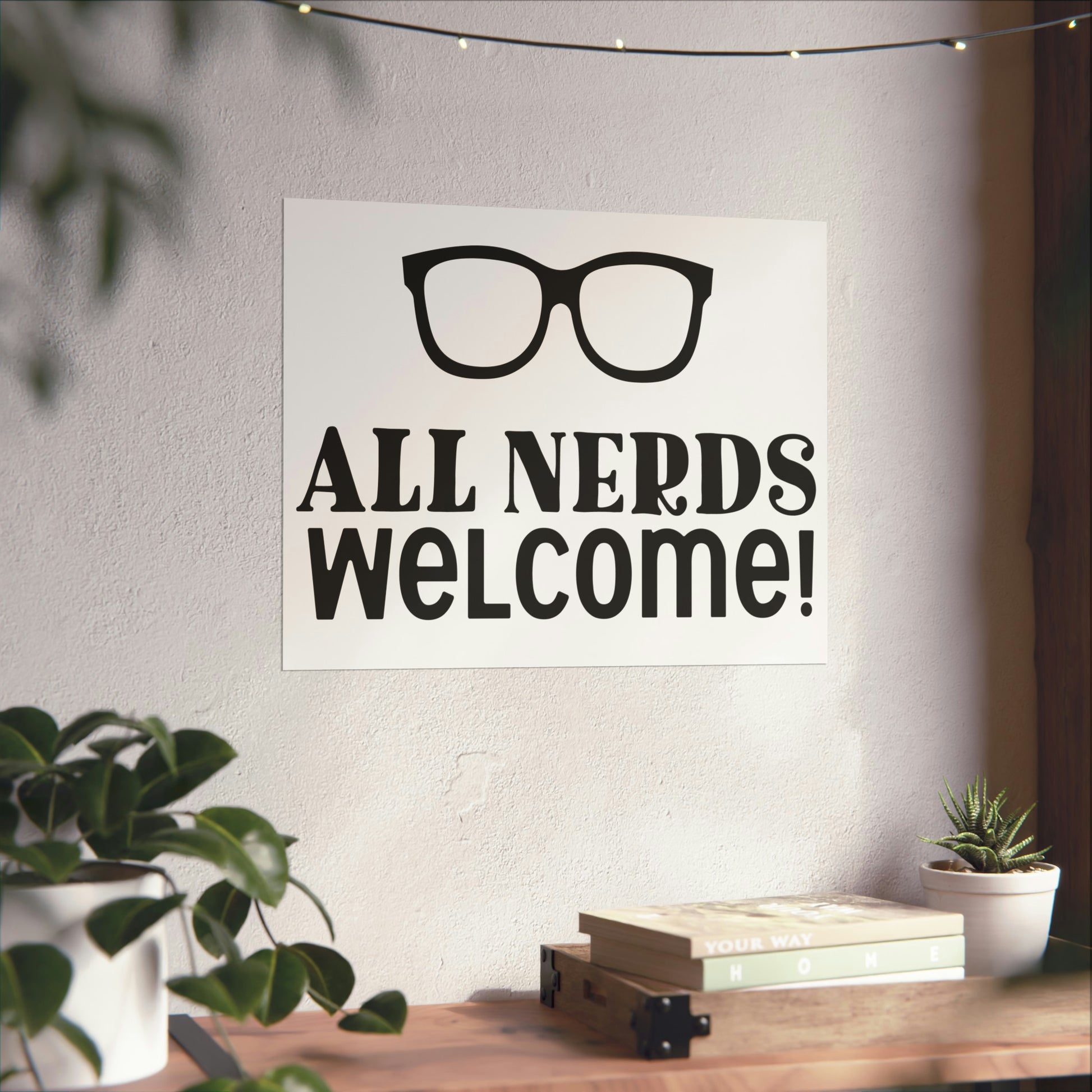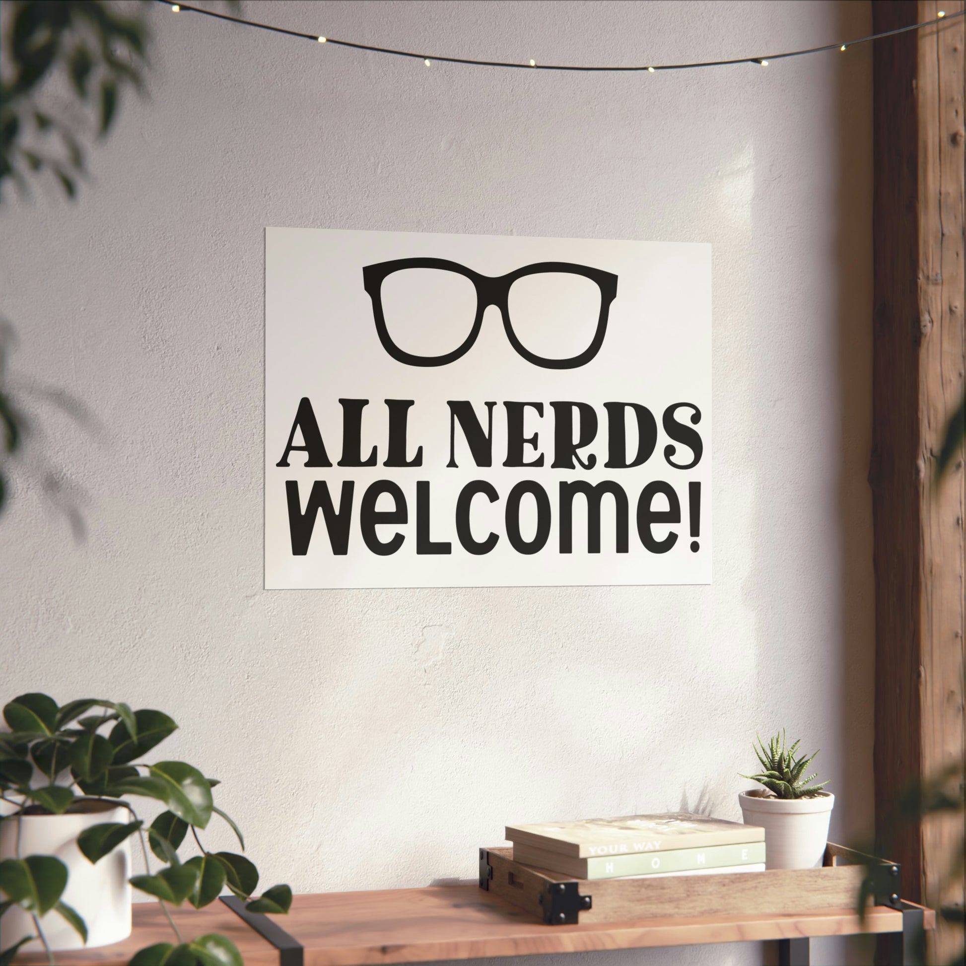Looking for art for your classroom, library, office, dorm room, or anywhere else you want to proudly welcome fellow nerds? Here's the poster for you. Hang it by itself, frame it in a simple wood frame for a cute farmhouse look, or put it in a black frame for a classic finishing touch. You'll get the message that All Nerds are Welcome across... adorably.