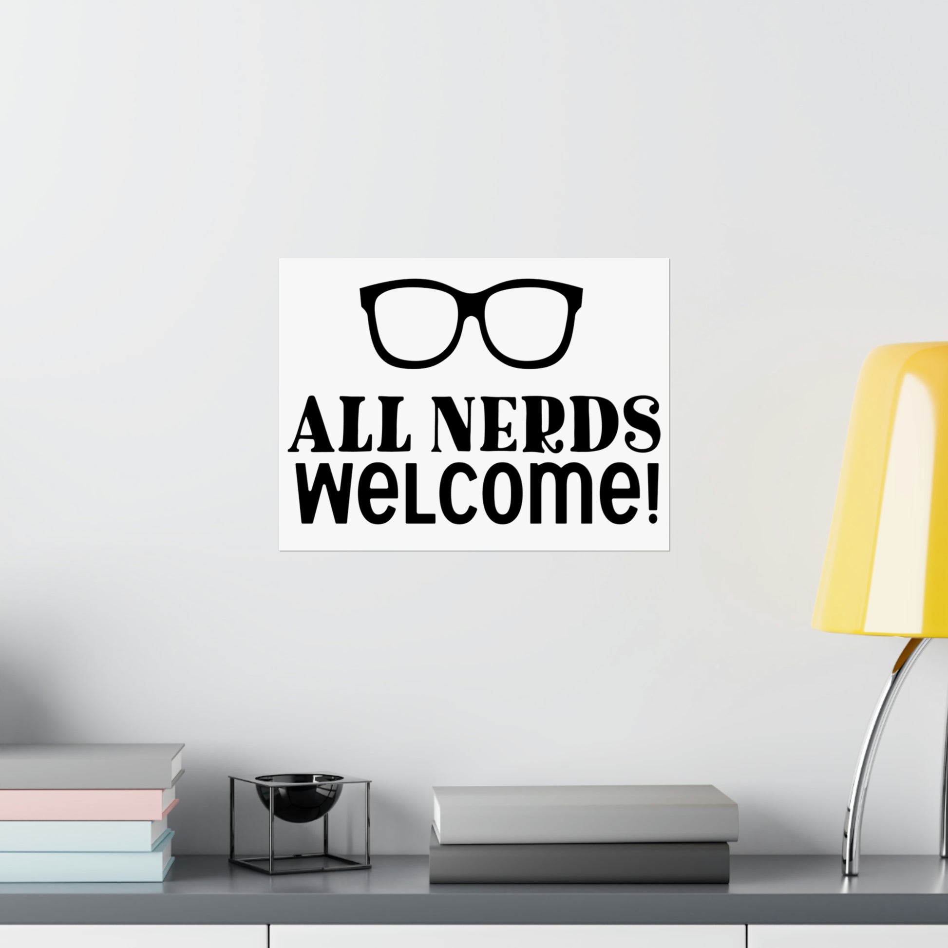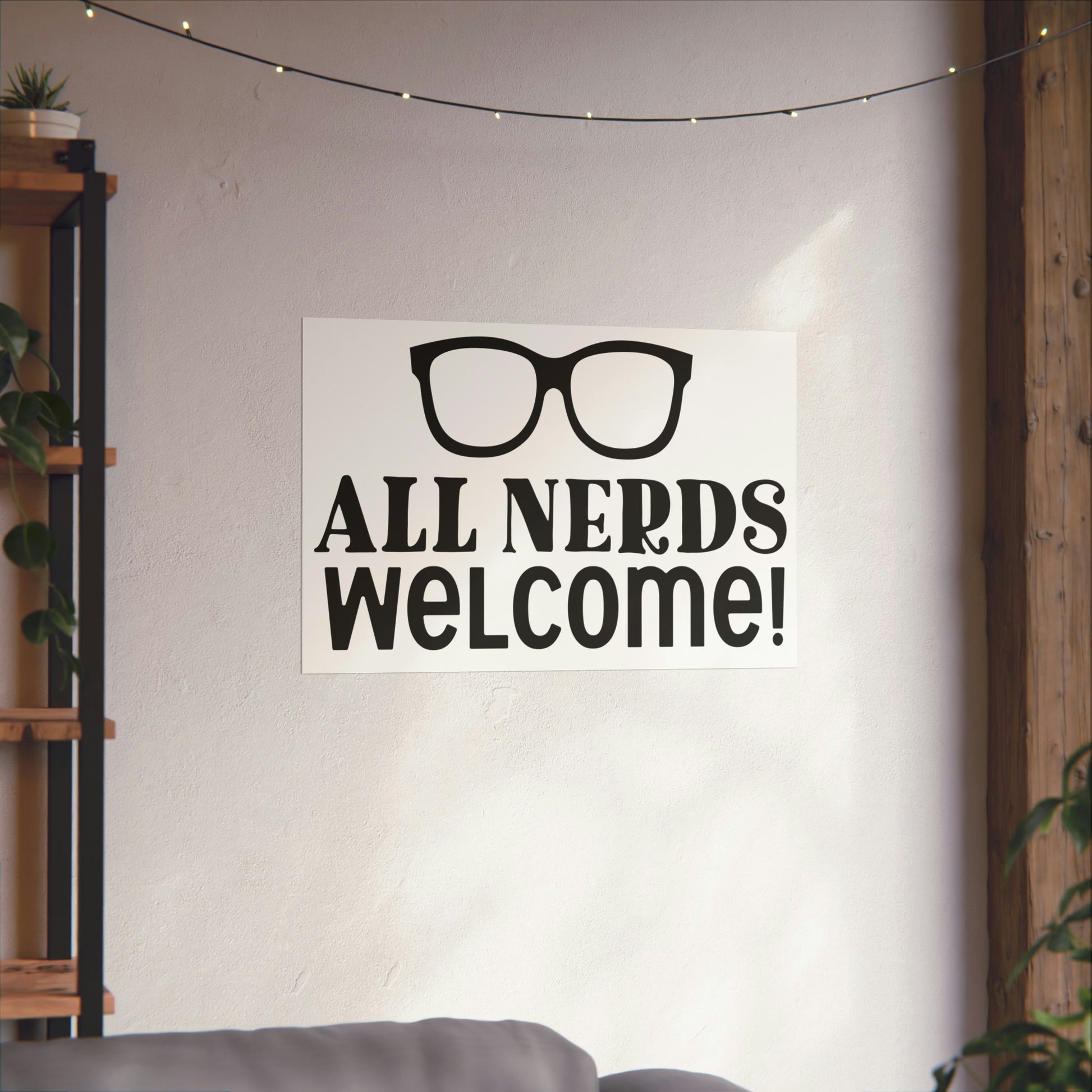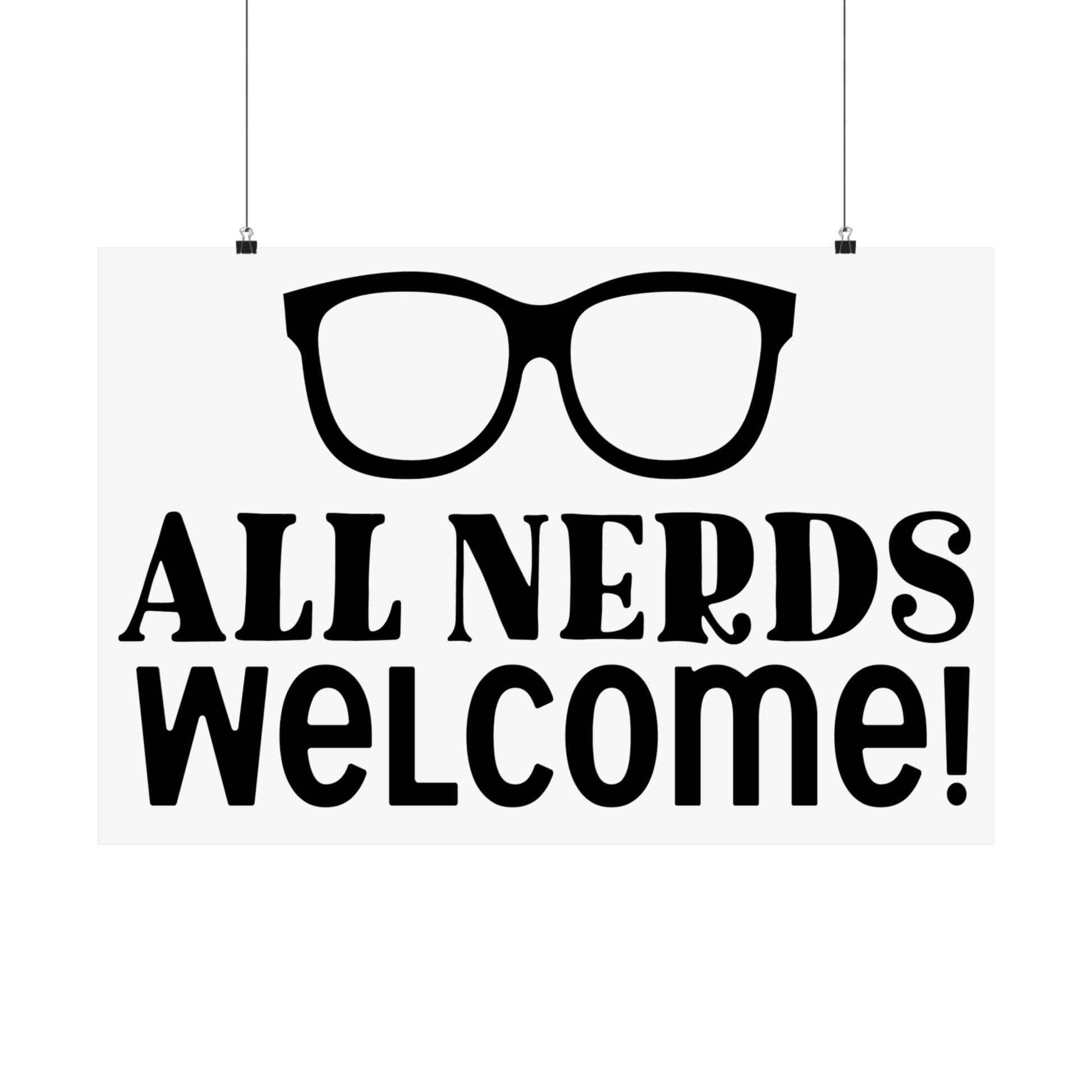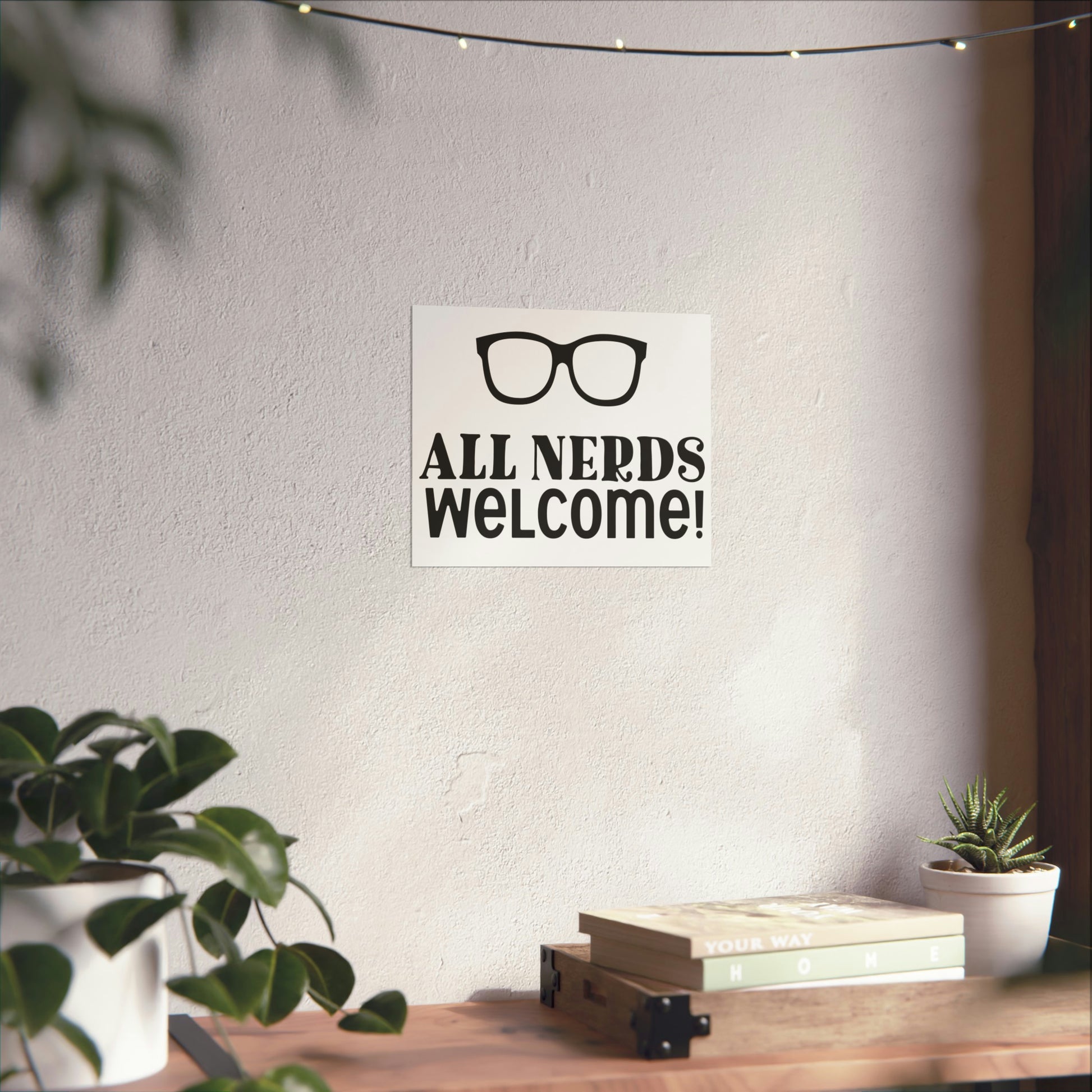 Looking for art for your classroom, library, office, dorm room, or anywhere else you want to proudly welcome fellow nerds? Here's the poster for you. Hang it by itself, frame it in a simple wood frame for a cute farmhouse look, or put it in a black frame for a classic finishing touch. You'll get the message that All Nerds are Welcome across... adorably.