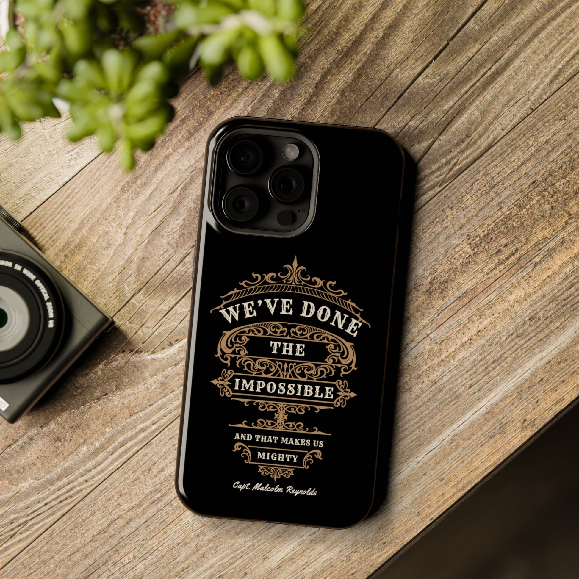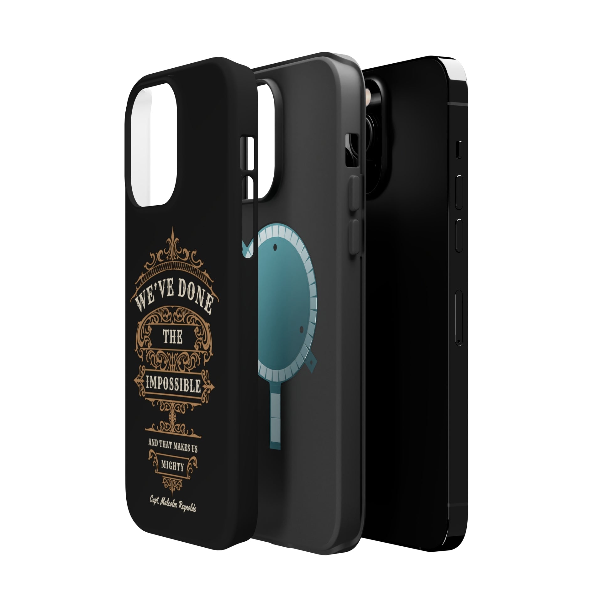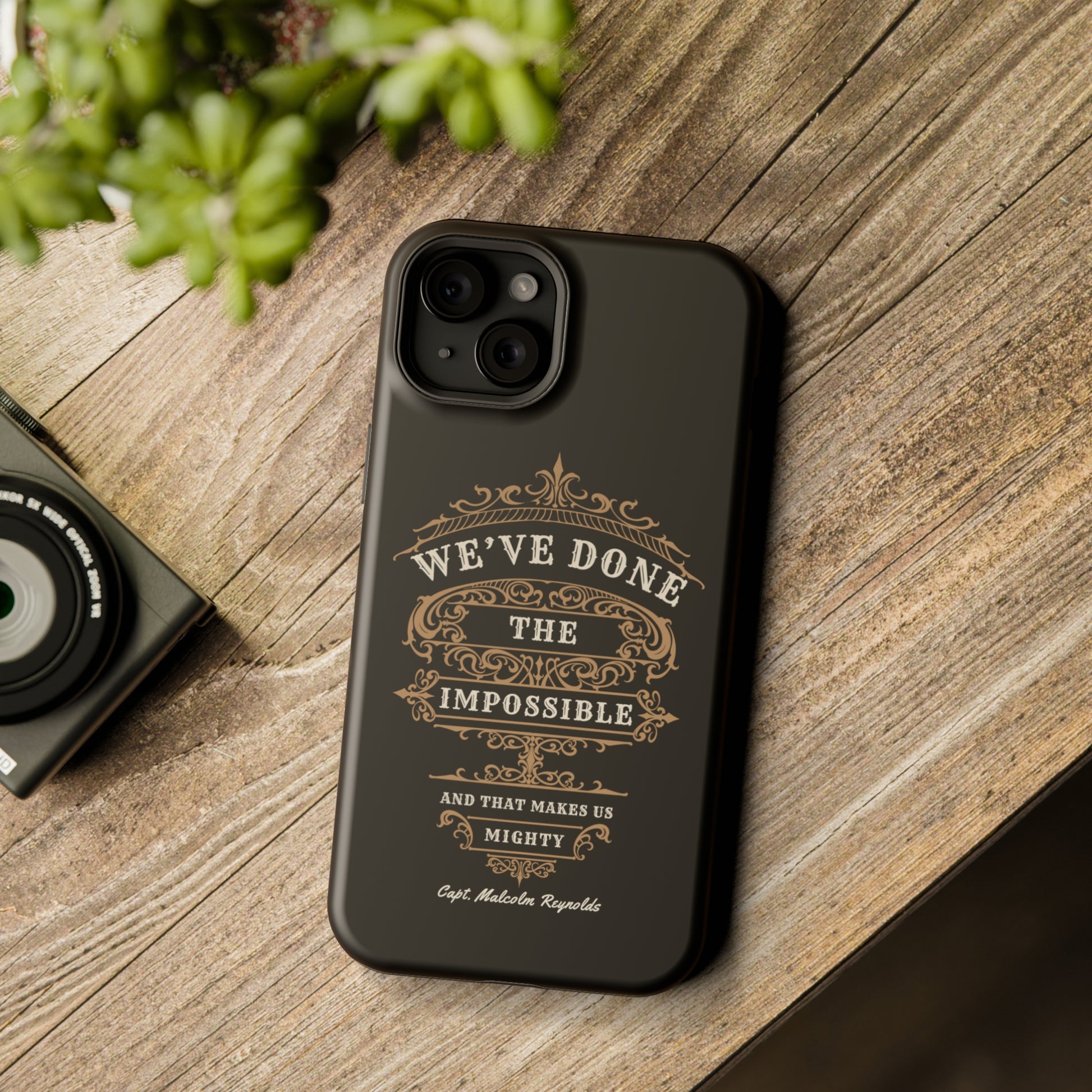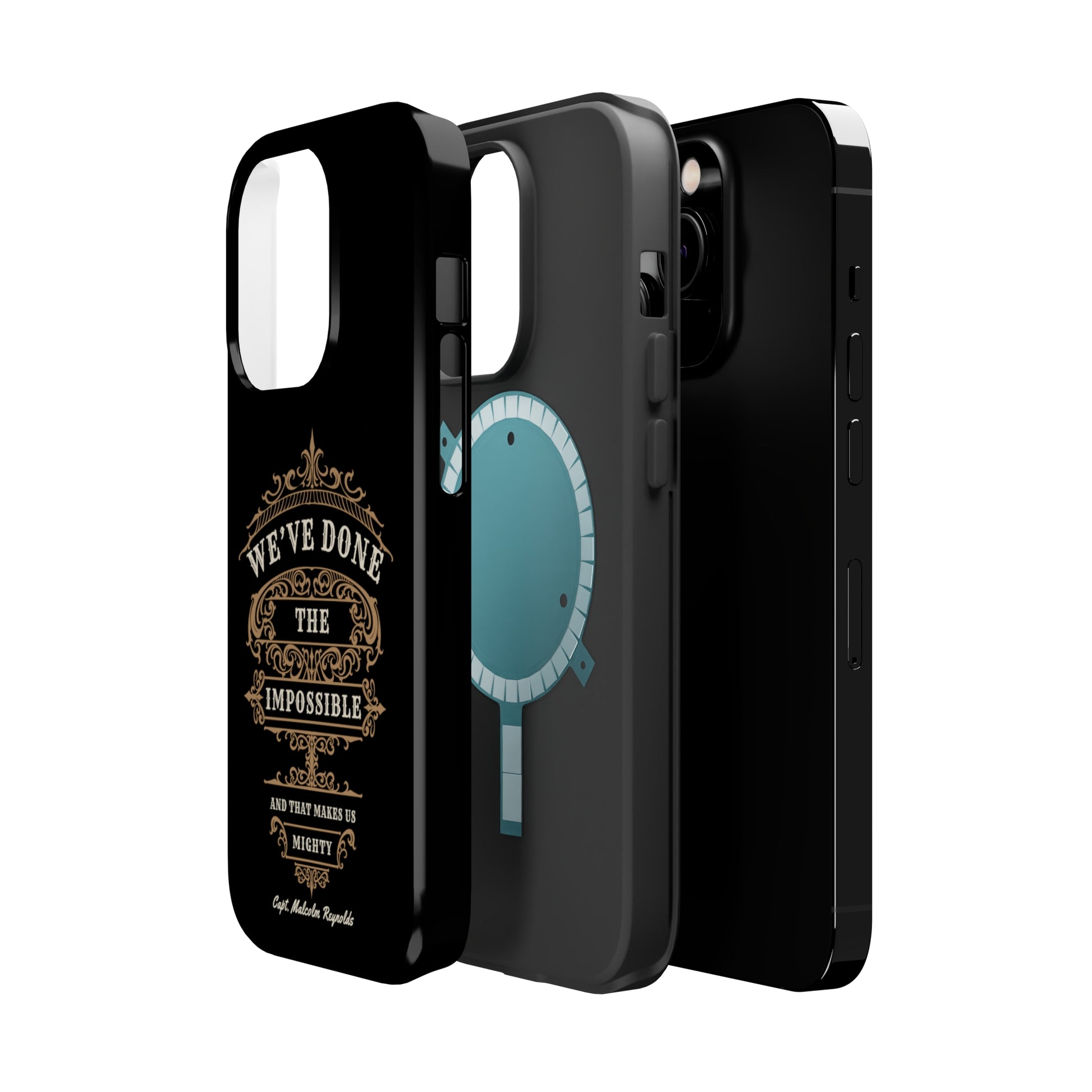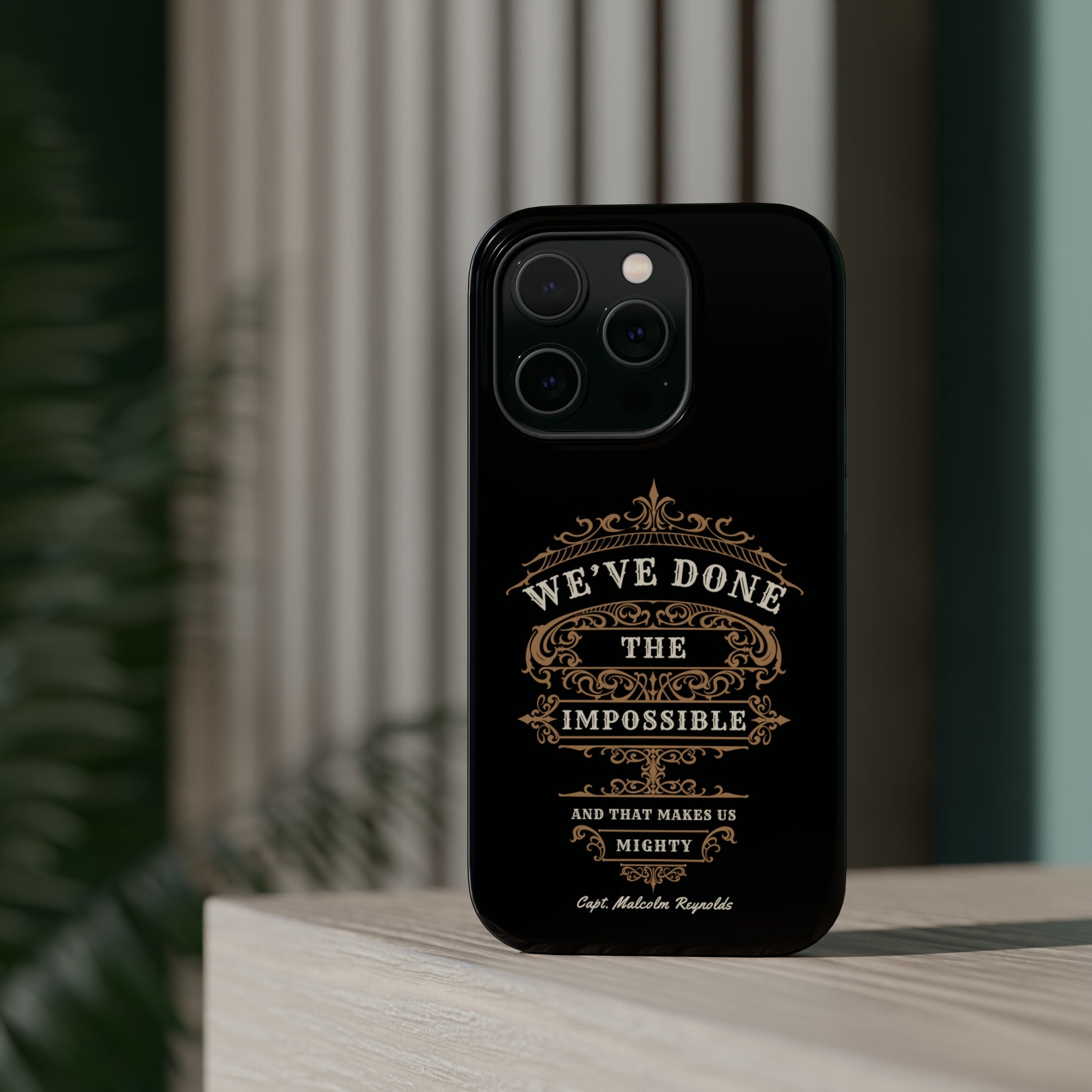 "We've done the impossible, that makes us mighty." A quote that good should go everywhere with you. Where better than on your phone case? Show off your love for Firefly and the wisdom of Captain Malcolm Reynolds with this unique Nerditeria-only design. MagSafe and tough as Captain Tightpants himself. Browncoats unite!