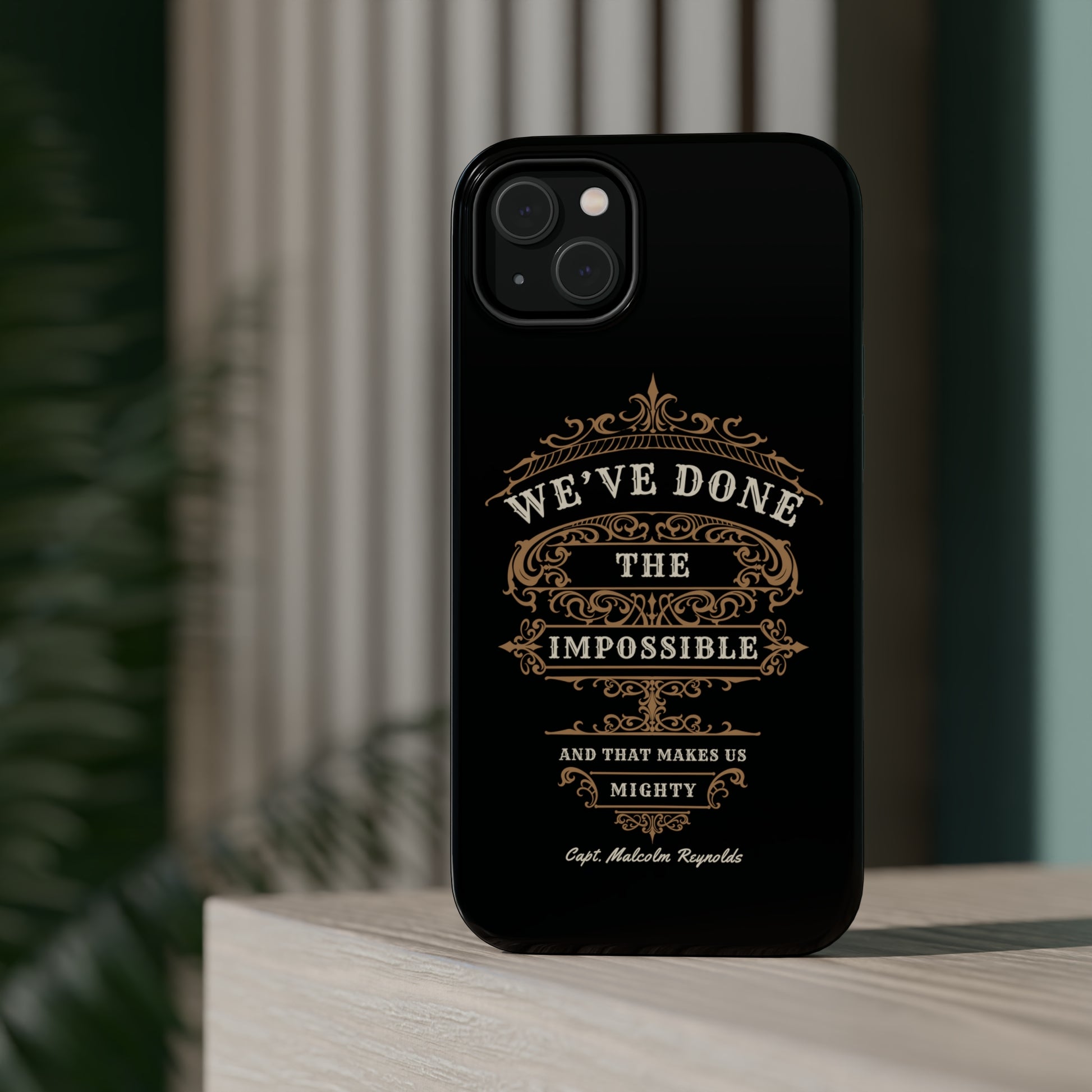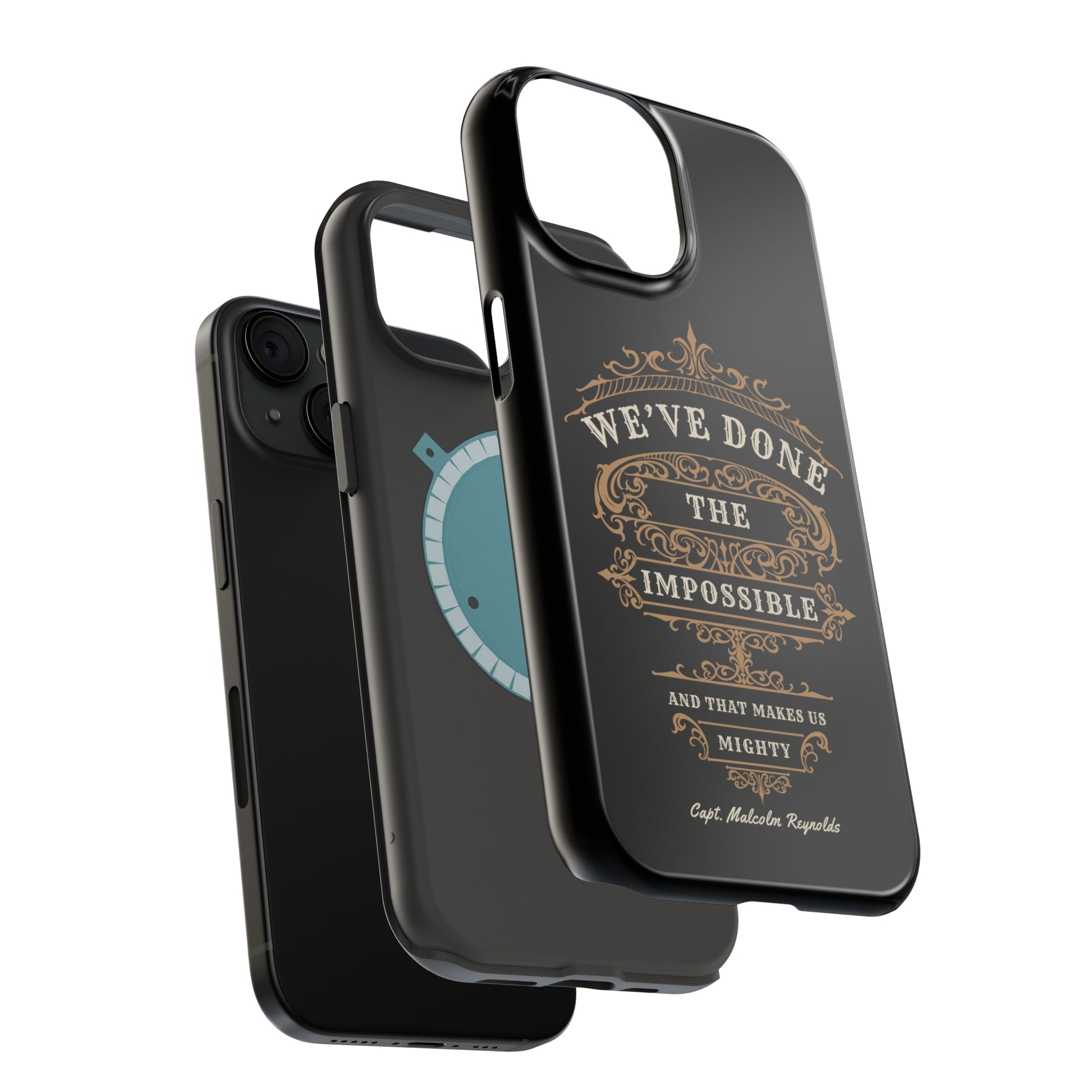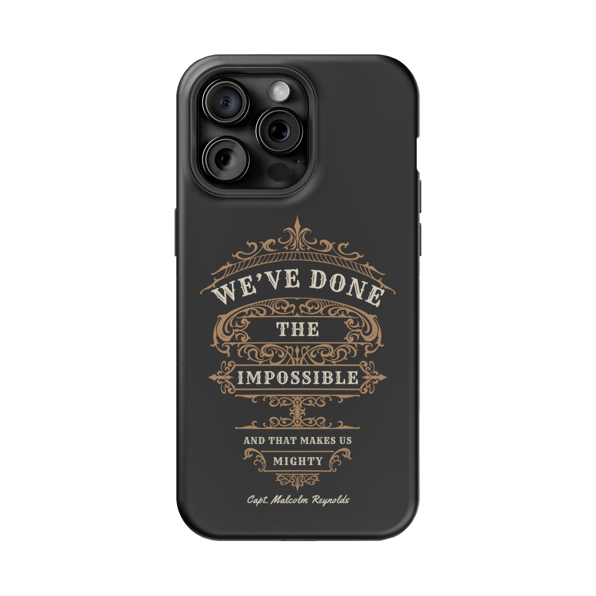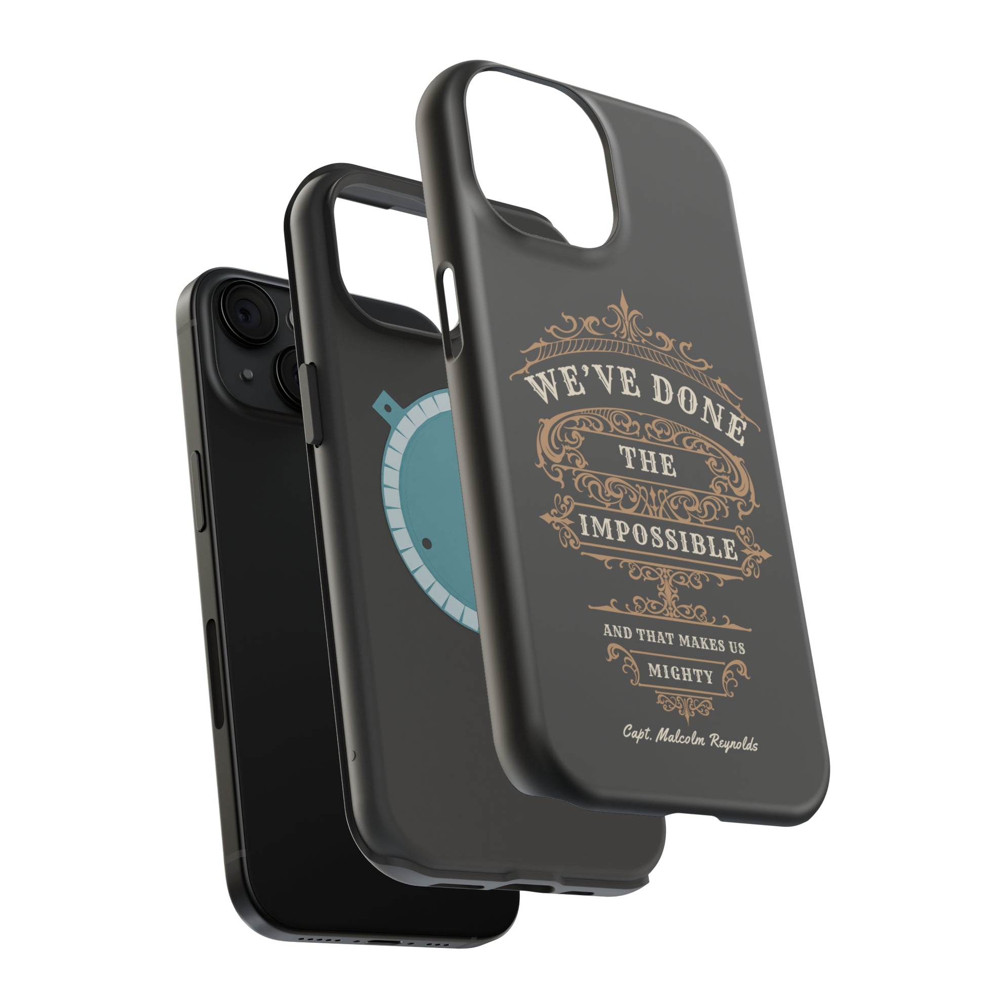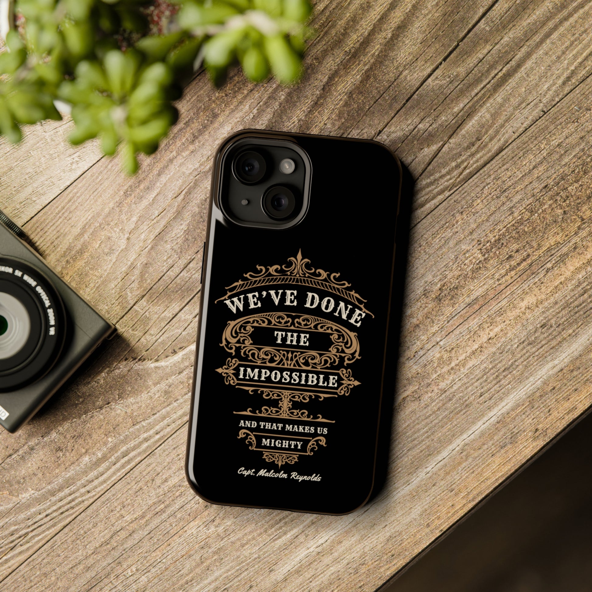 "We've done the impossible, that makes us mighty." A quote that good should go everywhere with you. Where better than on your phone case? Show off your love for Firefly and the wisdom of Captain Malcolm Reynolds with this unique Nerditeria-only design. MagSafe and tough as Captain Tightpants himself. Browncoats unite!