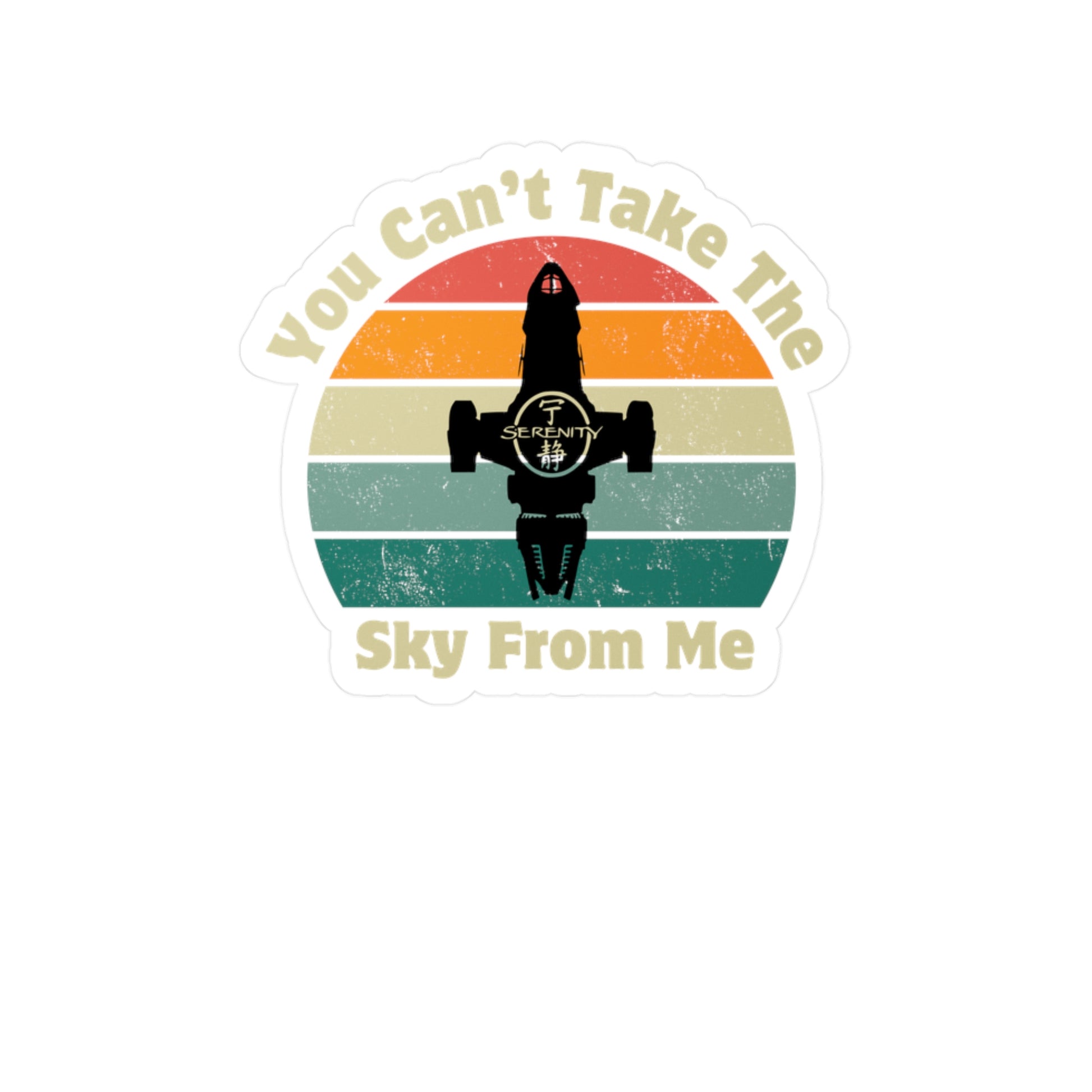 "Take my love, take my land, take me where I cannot stand. I don't care, I'm still free, you can't take the sky from me." If you know the show, you're singing that in your head. Part of the allure of Firefly even all these years later is the defiance which the crew of Serenity displays by just living their lives on their own terms. We can all identify with a bunch of misfits and outcasts, living on the edge of civilization, scratching out a living and being "Big Damn Heroes" while they do it. Show your browncoat status with this original design Firefly sticker.